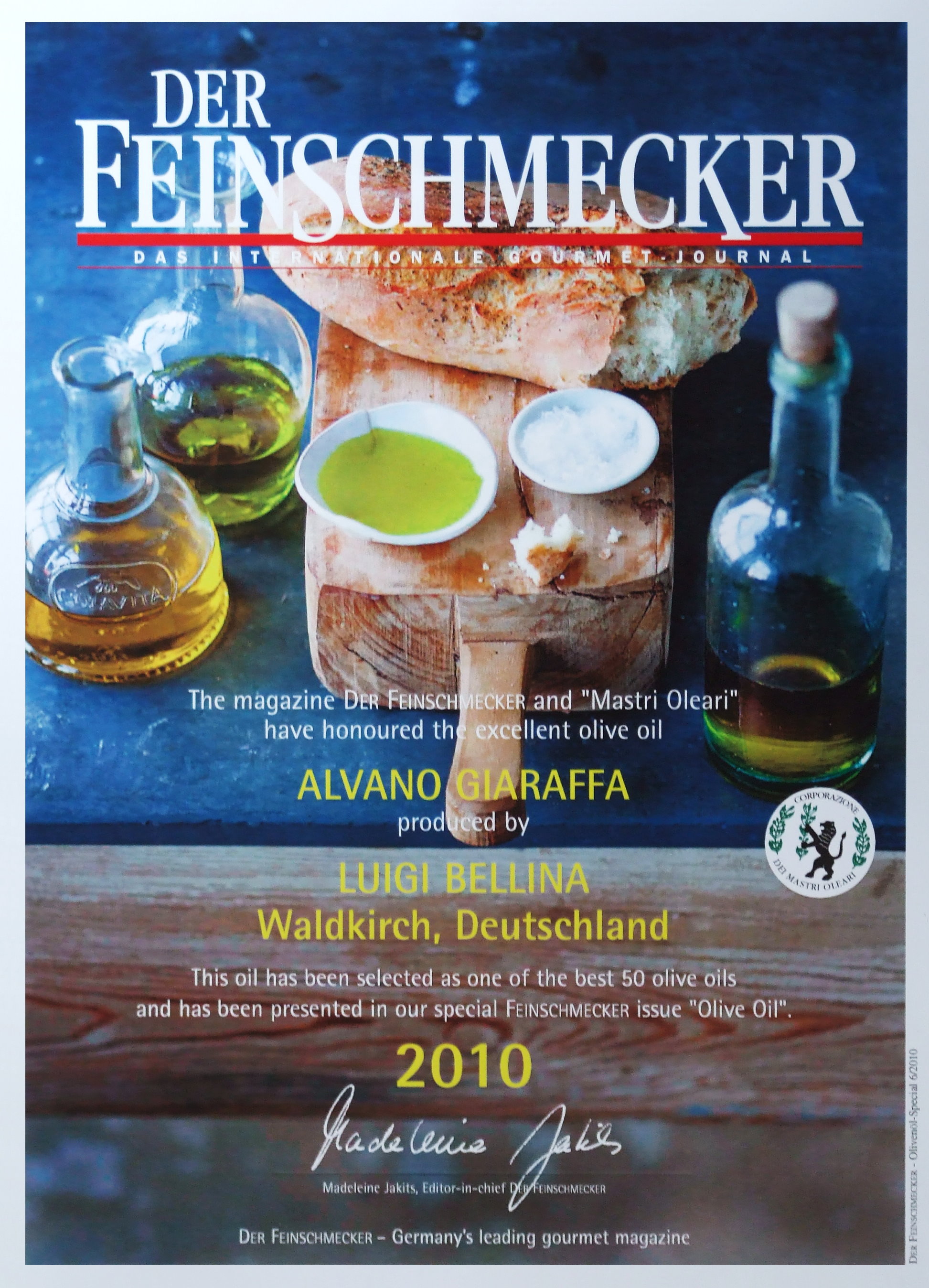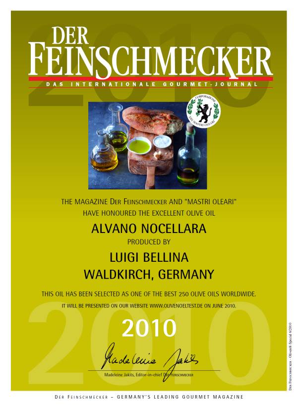 [singlepic id=88 h=180 float=right]Die Öle aus dem eigenen Olivenhain unterhalb des Monte Triona, auf Gemarkung Alvano im Flurgebiet von Bisacquino, Provinz Palermo nehmen nun schon seit mehreren Jahren eine Spitzenstellung ein. Der teilweise stark schotterige Lehmboden, in leichter Hanglage auf 320m über Meereshöhe, bietet ideale Voraussetzungen für die Aufnahme von Mineralien und Nährstoffen. ca 200 Bäume aus altem Bestand werden auf eine maximale Höhe von 4-5 m gehalten, auf die Verwendung von Kunstdünger oder chemischen Pflanzenschutzmitteln wird grundsätzlich verzichtet. 2007 kamen 500 junge Pflanzen dazu, 2012 wurden erstmals nennenswerte Olivenmengen geerntet. 2015 konnten wir bereits einen Rekord von 3500 kg Oliven nur aus dieser Neupflanzung verzeichnen.